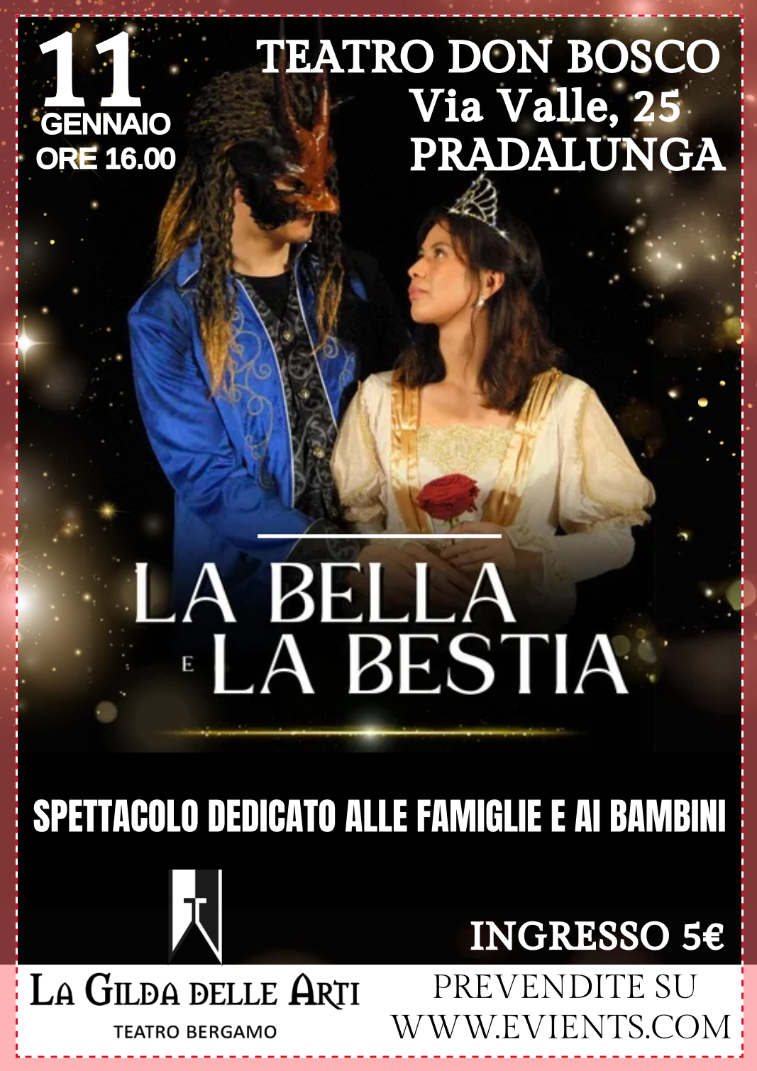 Domenica11 gennaio 2026, alle ore 16.00, il Teatro Don Bosco di Pradalunga (Via Valle, 25) ospiterà lo spettacolo teatrale “La Bella e la Bestia”, una produzione de La Gilda delle Arti – Teatro Bergamo.
