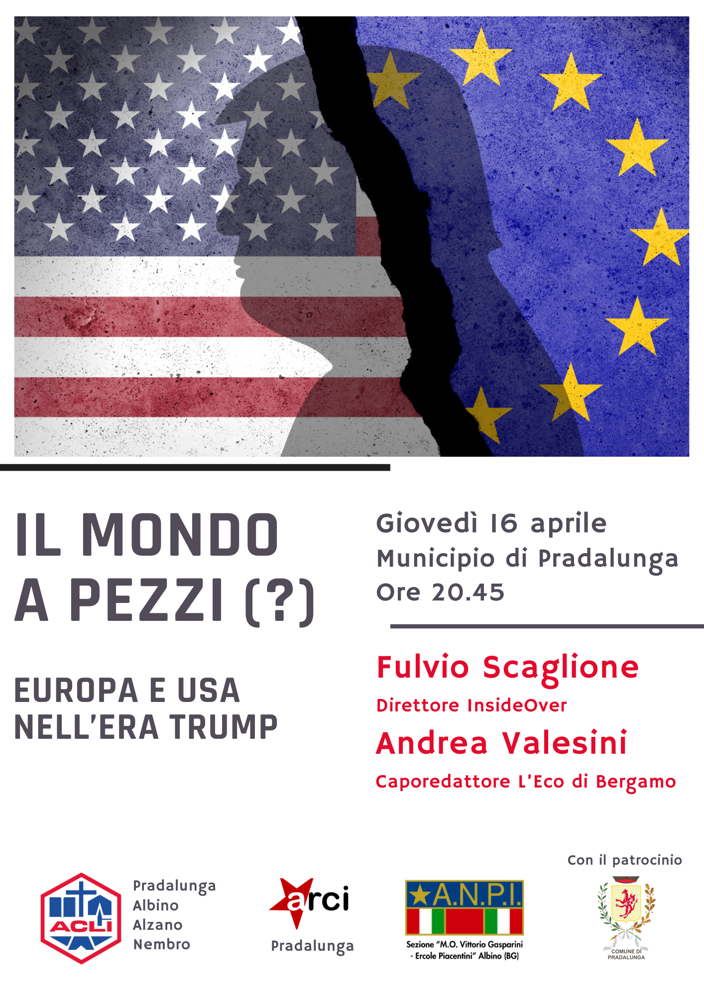 Giovedì 16 aprile, alle ore 20.45, presso il Municipio di Pradalunga, si terrà un incontro dedicato ai rapporti tra Europa e Stati Uniti nell’era Trump.