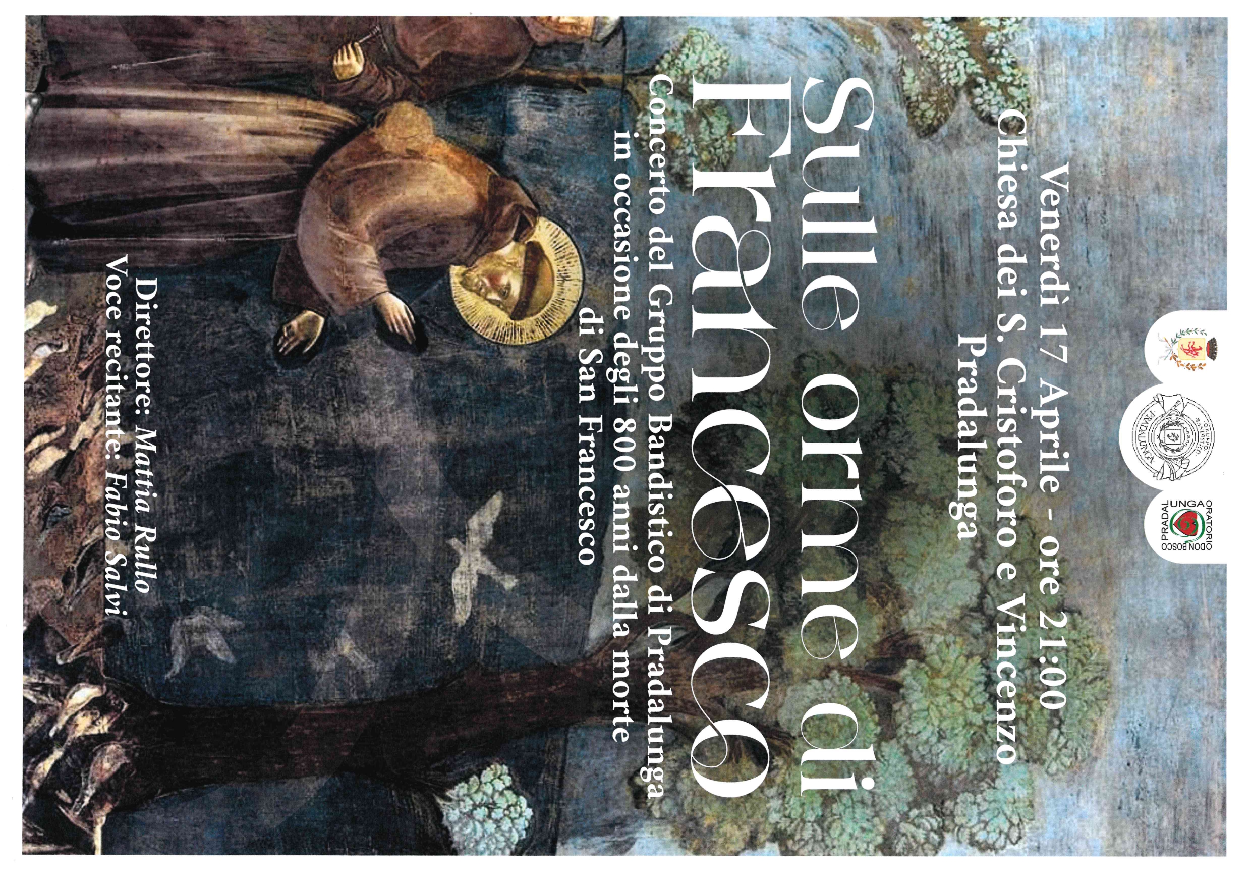 Venerdì 17 aprile alle ore 21:00, presso la Chiesa dei Santi Cristoforo e Vincenzo di Pradalunga, il Gruppo Bandistico di Pradalunga propone un concerto speciale dedicato a San Francesco, a 800 anni dalla sua morte.